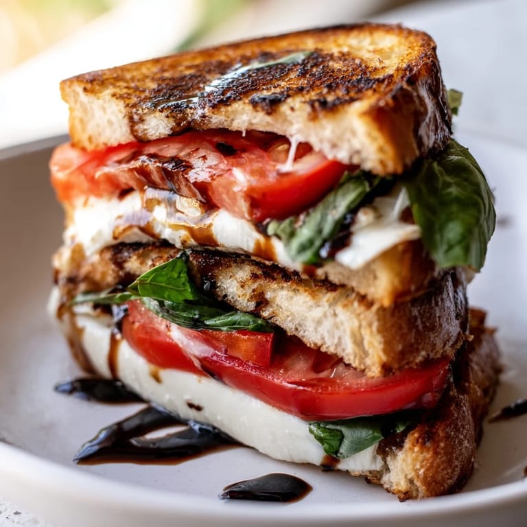 Save The first time I made this was on a rainy Tuesday afternoon when I had too much basil from my garden and a loaf of sourdough getting stale on the counter. I thought it would be just another grilled cheese, but when that balsamic hit the warm tomatoes, something magical happened in the pan. My roommate walked in and asked what smelled so incredible, and suddenly we were both sitting on the kitchen floor eating these sandwiches straight from the cutting board. Now its the only grilled cheese I make.