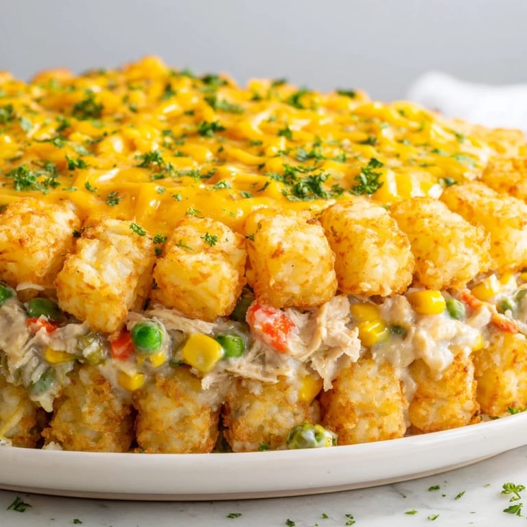 I remember making this for my neighbor's family when their oven broke right before dinner, and the look on their kids' faces when they took that first bite—pure joy. There's something about the combination of creamy, savory filling with those crunchy, salty tots that just hits different, especially when you're feeding people you care about.