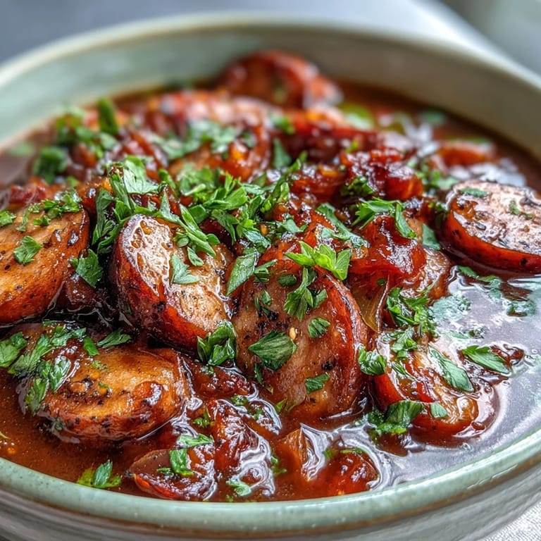 Save The summer my son turned twelve, we made a pact to try one new family recipe a month. One rainy Saturday, with nothing but the pantry to work with, I spotted a package of cocktail sausages and thought, Why not soup? My kids looked at me like I'd lost my mind when I started mixing BBQ sauce with apricot jam, but the kitchen soon filled with a sweet, smoky aroma that drew them back in. That improvised experiment became our Crock Pot BBQ Cocktail Sausage Soup.