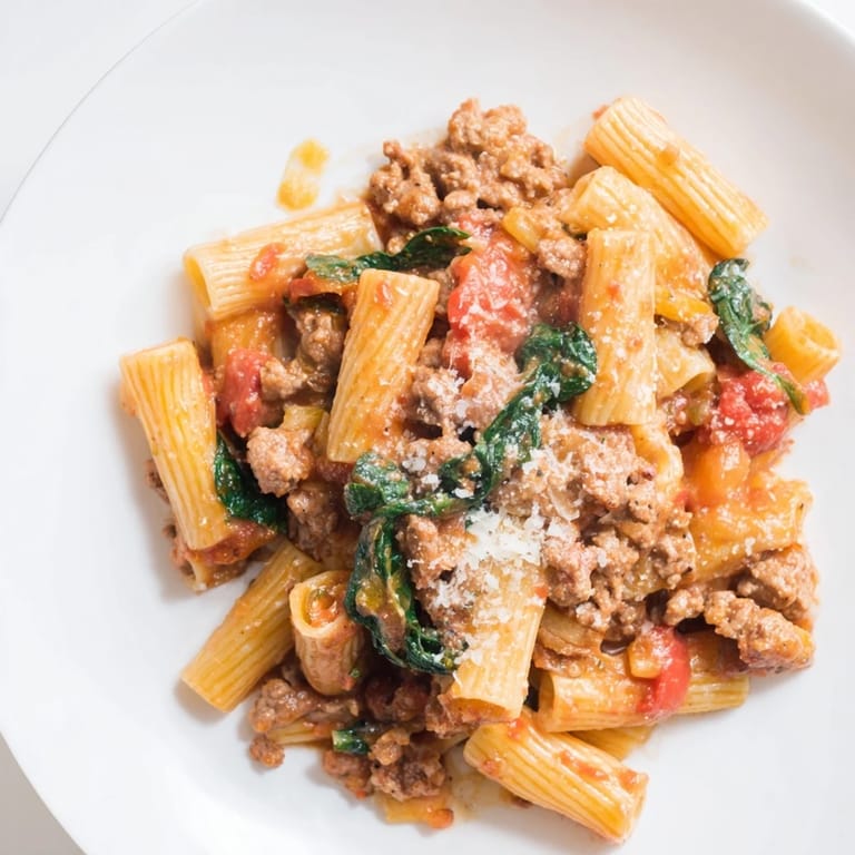 Save I discovered this dish on a Tuesday night when my fridge had three things: Italian sausage, a can of tomatoes, and the end of a box of pasta. My partner was working late, and I wanted something that didn't require multiple pans or fussy timing. One pot, thirty-five minutes, and the whole kitchen smelled like garlic and tomato—that's when I knew I was onto something special.