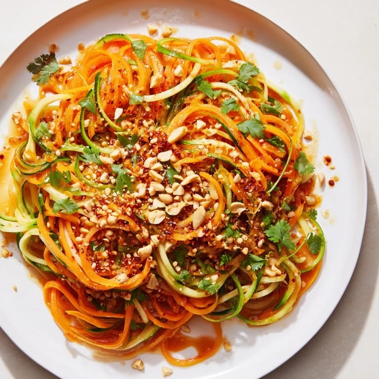 Save I first made this on a sweltering afternoon when my neighbor dropped off a basket of cucumbers from her garden—more than I knew what to do with. There was a viral video making the rounds at the time, something about spiralized vegetables and chili oil, and it just clicked. Twenty minutes later, I had a bowl of something that tasted unexpectedly bright and alive, with just enough heat to make me feel like I'd discovered something. It became my go-to when the weather turns hot and my appetite shrinks to something light.