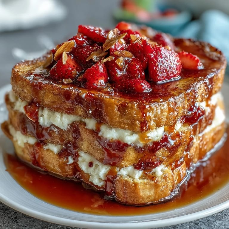 Save There's something about spring mornings that demands a dish as bright and generous as the season itself. I stumbled onto this French toast bake while trying to figure out how to feed eight hungry friends without spending the entire morning at the stove, and it's become the centerpiece of every brunch I throw now. The beauty is in its simplicity—brioche soaks up a silky custard overnight, strawberries bleed their sweetness into every bite, and somehow the whole thing tastes both elegant and effortless. My sister calls it my secret weapon, and honestly, she's right.
